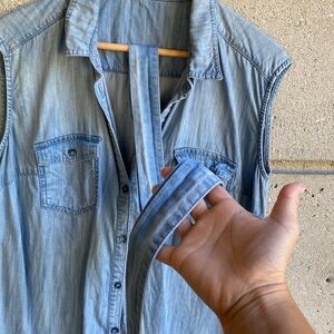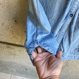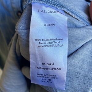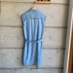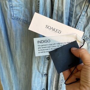 Soaked in Luxury Denim Dina Dress. Previously worn a handful of times. This is such a great closet staple and goes with so many outfits. Perfect travel dress! No flaws to note other than freshly laundered and laid flat to dry. PLEASE NOTE: Stock photo is another model Soaked In Luxury dress with similar fit when it’s not tied up. The pockets are different on that one. This one has button flap pockets.