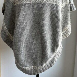 Soaked in Luxury Grey Fair Isle Wool-Blend Button Poncho, Ribbed Collar – US M