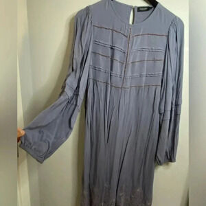 Comfort and style in this dusty periwinkle boho inspired Tunic dress. Thoughtful eyelet lace along trim and key hole openings along bust. Timeless piece that will pair perfectly with any footwear! *fit is very oversized & long