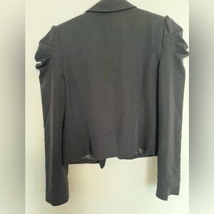 Soaked in luxury Black Women's Jacket. Perfect for any occasion, this jacket offers a sleek and sophisticated look. With ruffles on top of shoulder, super versatile , casual or formal wear, cocktail, party night out buisiness