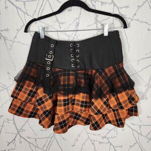 Social Collision Orange Plaid Buckle Tulle Skater Mini Skirt