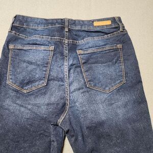 Moderate whiskering as shown. A classic mid-wash high rise skinny from trusted brand sold at Antropologie.