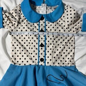 Sock Hop Poodle Skirt Dress Costume Blue and White with black Polkadots Sz 6X-8