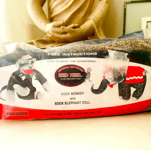 Make a sock monkey or elephant. 2 pairs of socks. I think it’s just the socks and your creativity. Red hill socks.