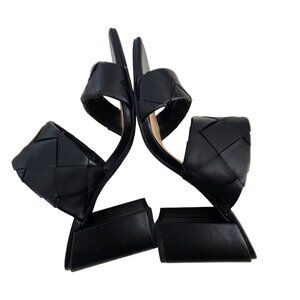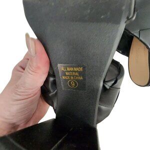 Soda Black Woven Heeled Mules For Women Size 9 Square Toe Block Heel