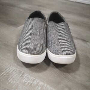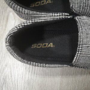 Soda Ladies Size 7 Black & White Plaid Slip On Sneakers