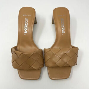 Soda Woven Heeled Backless Braided Square Toe Slip On Block Heel Sandals Sz 6