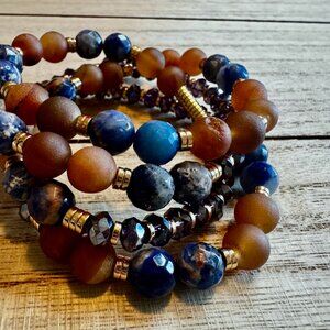 Each stone was carefully chosen for its natural beauty and high-vibe energy—from the marbled blues of sodalite to the textured shimmer of druzy agate, and the deep sparkle of navy crystal. Whether you're dressing up or keeping it casual, this bracelet adds the perfect pop of earthy luxe.