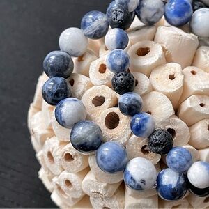 Sodalite & Lava Stone - Handmade Beaded Bracelet Set