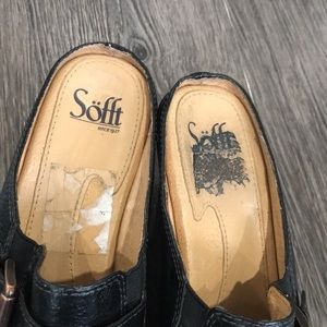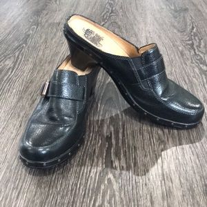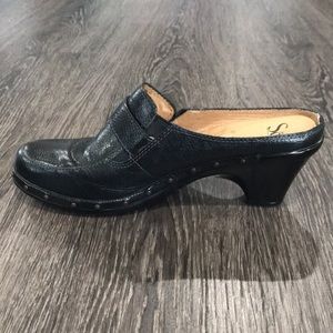 Sofft Black Leather heeled Mules with Studs and Buckles 8.5