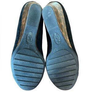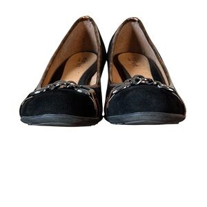Sofft Eurosport Black suede heels with leopard trim and gun metal chain