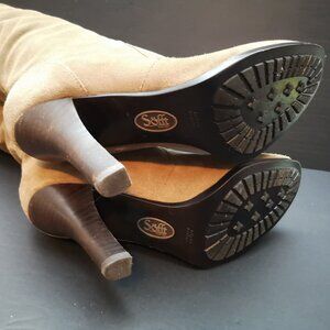 Sofft Ladies Size 7.5 Light Tan Knee High Heeled Pull On Style Suede Boots