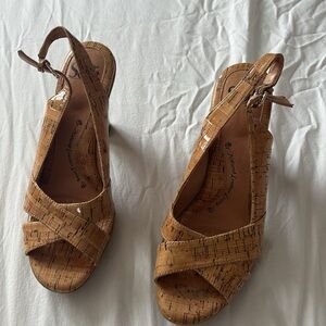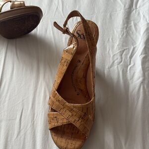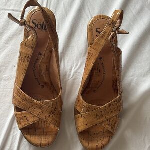 Sofft Portia Platform Sandals Womens 8M Natural Laminated Cork Criss Cross