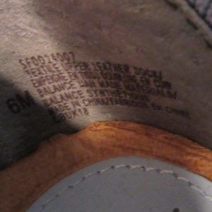 In like new condition these are a great lightweight feel in a pretty knit mesh pattern. Sneaker has a leather lining and footbed, multi-layer insole, arch cookie for support. These are super lightweight and very flexible. Colour is a blueish-grey