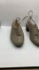 Size 7.5 women’s. Beautiful metallic taupe suede with wood look heel. Mule like covered toe. Tie detailing at the back of the heel. Stacked chunky wood heel that flares. Cushioned insole. Natural leather lining. Grip soles.