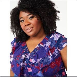 Sofia Vergara Top Womens XXL Blue Pink Floral Sleeveless Ruffle Blouse