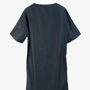 The elegant navy cotton Drop dress by Sofie D'Hoore circa 2015 features a round neckline and relaxed fit midi-length design. With convenient side seam pockets at each hip, it combines style and functionality for a versatile wardrobe staple. Perfect for any occasion, this dress is a must-have for the modern woman.
