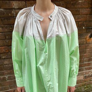 Sofie D’Hoore colourblock cotton poplin dress, size 34. This is the smallest size, but it fits oversized, and could work for anyone who is in the size 2-6 size range in the shoulder (since that’s the only place the size will be relevant).