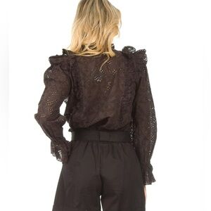 This elegant black lace top is perfect for any occasion. Its intricate design adds a touch of sophistication to your wardrobe.