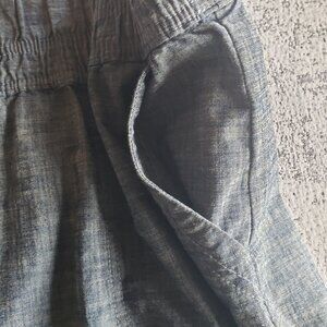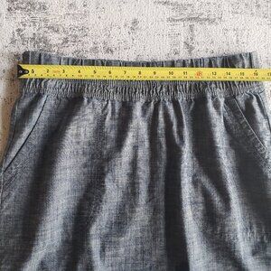 Soft Blue Linen Look Skirt w Pockets Stretchy Waistband