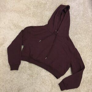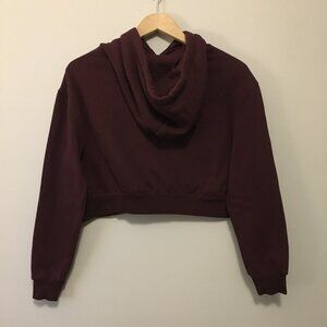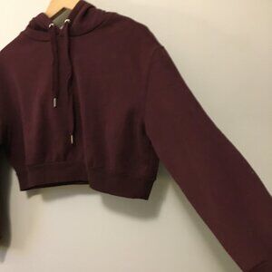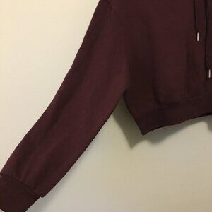 Very good preowned condition, stretchy, dark burgundy, cropped pullover hoodie sweater by Bluenotes. So soft and cozy. A cute pullover with plenty of life left in it. Pullover, no closure.