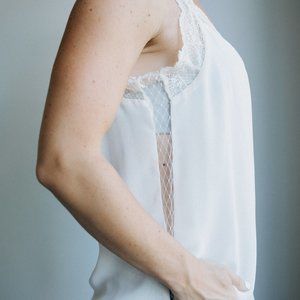 SUPER soft adorable date night cami! Made from 100% polyester. Sweet lace details and easy to dress up or dress down. Size small, loose fitting. Brand new with tags.