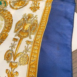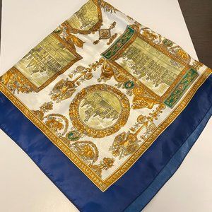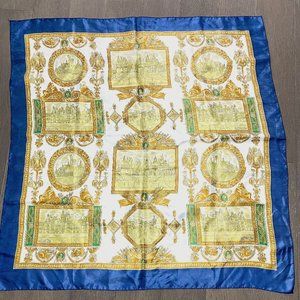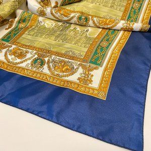 Soft Fabric Scarf Navy and Gold Castles Roman Ornate Design