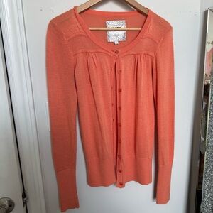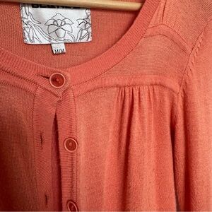 A romantic button-front cardigan in a warm coral hue โ perfect for crisp fall mornings or layering over dreamy dresses. Features gentle pleating along the bust, long sleeves, and a feminine scoop neckline. Lightweight but cozy โ ideal for cottagecore, soft grunge, or romantic vintage wardrobes.
