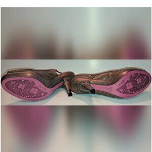 Leather peeptoe heels. Gorgeous color with pink soles.