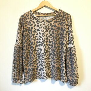 Very good preowned condition, leopard spot printed top in soft muted tones by Cherish. Features the coolest statement balloon sleeves. Reminds me of the Broadway musical Cats costumes with their leg warmers and gym clothes throughout the 90s. So cute. Perfect for your inner cat lady. Feline, fearless, faithful and true.