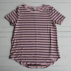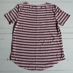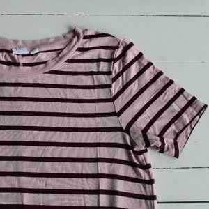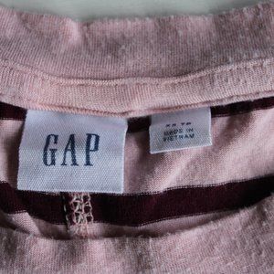 A super soft fabric from GAP. Classic t-shirt silhouette with a fun colour combination and stripe patter. Pink and Burgundy.