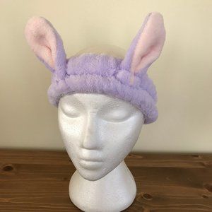Soft Plush Bunny Ear Stretch Headband Lilac Purple with Pastel Pink