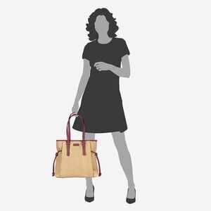 Soft synthetic straw weave tote handbag with top shoulder handle
