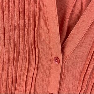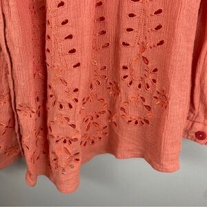 Soft Surrounding Glam Gauze Button Down Eyelet Roll Tab Sleeve Tunic Top Small
