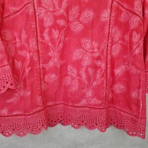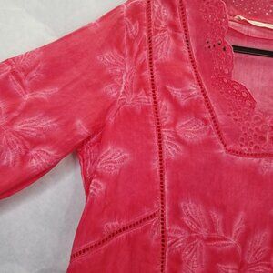 Soft Surroundings Deidre Tunic Women’s M Pink Floral Embroidered Eyelet Trim Top