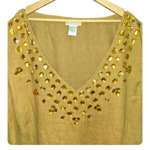 Soft Surroundings Pale Wheat color Embellished Linen Tunic Bohemian 2XL