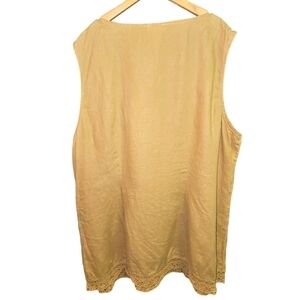 Soft Surroundings 100% Linen Tunic Top Womens 2XL Yellow Rhinestone V-Neck Boho Chic, Detail Zip Side, Breathable, Wheat/Yellow in Color, Sleeveless, Wide Strap Tunic, Classic Woven Trim Detail, Long.