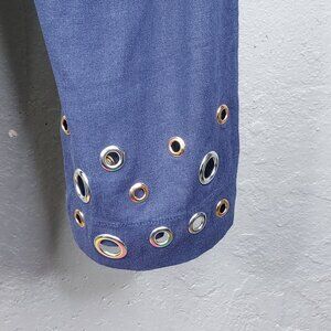 Soft Surroundings Pants Women Medium Wide Leg Crop Linen Metal Ring Embellished