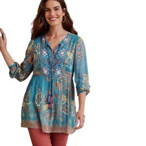 Soft Surroundings Womens Mirapani Tunic, Embroidered, Tassel, Boho, Embellish, M