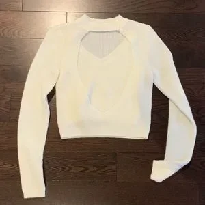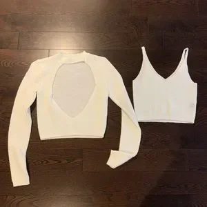 Adorable white super soft and stretchy sweater set; cami layer then a cardigan which buttons at the neck and flattering banded waist.