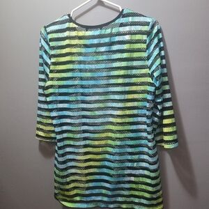 Soft Works Black and Aqua Green Striped Top M