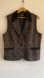 Black and gray vest by Soft Works. Equestrian style. Notched collar. Lined. Black abstract flocking (like velvet). Three button closure. Great pockets! Black accent fabric feels like brushed cotton. Tailored fit. Excellent used condition.