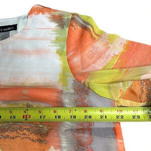 Soft Works 🇨🇦 balloon sleeve blouse,sz LARGE boho ,Multicolor,artsy,semi sheer