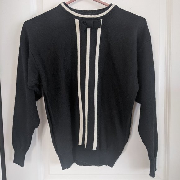 Soft black and white knit sweater with bow