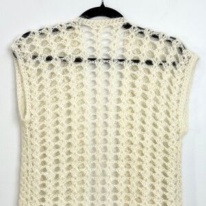 Soft fuzzy open knit sleeveless open front sweater vest