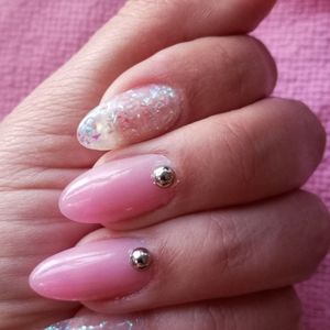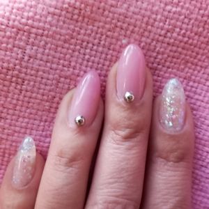 These sweet pink an iridescent glit Press on Nails are hand painted, using Uv/Polygels/Hybrid gels ,Dips and Acrylics..!!!!!!!!!