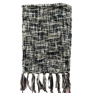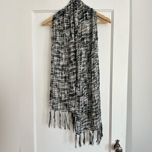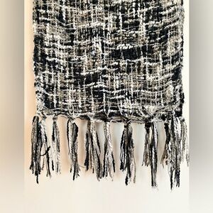 Soft winter scarf with tassels. Knitted black & white elegant winter wear.