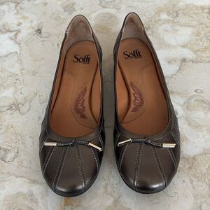 In excellent preowned condition, these are almost new, trendy leather ballerina flats from Sofft. In gorgeous bronze tone leather, comfortable leather lined insoles and rubber anti slip soles. Easy to wear shoes that’ll take you from morning office meetings to evening dinner dates.