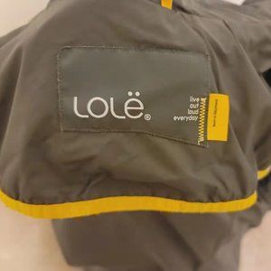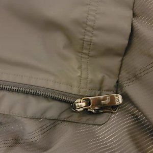 Zipper pull a bit discolored, one fabric belt mississing
