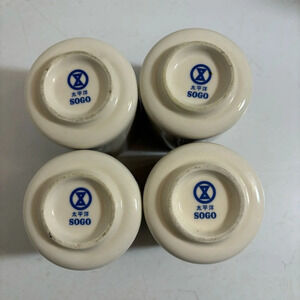 Sogo Hong Kong ceramic blue and ivory handleless mugs cups - set of four